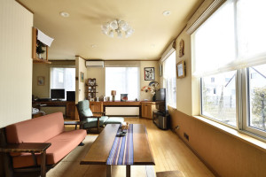 高橋邸のリビング写真です。落ち着きのある和の風情を感じる家族の憩いの空間です。